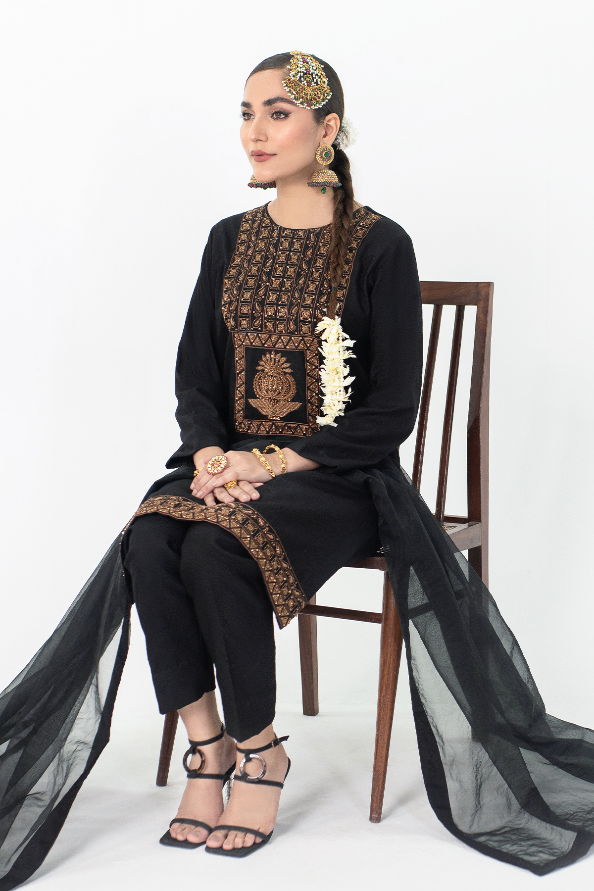Dabka: Metallic thread embroidery adds a luxurious touch of glamour.